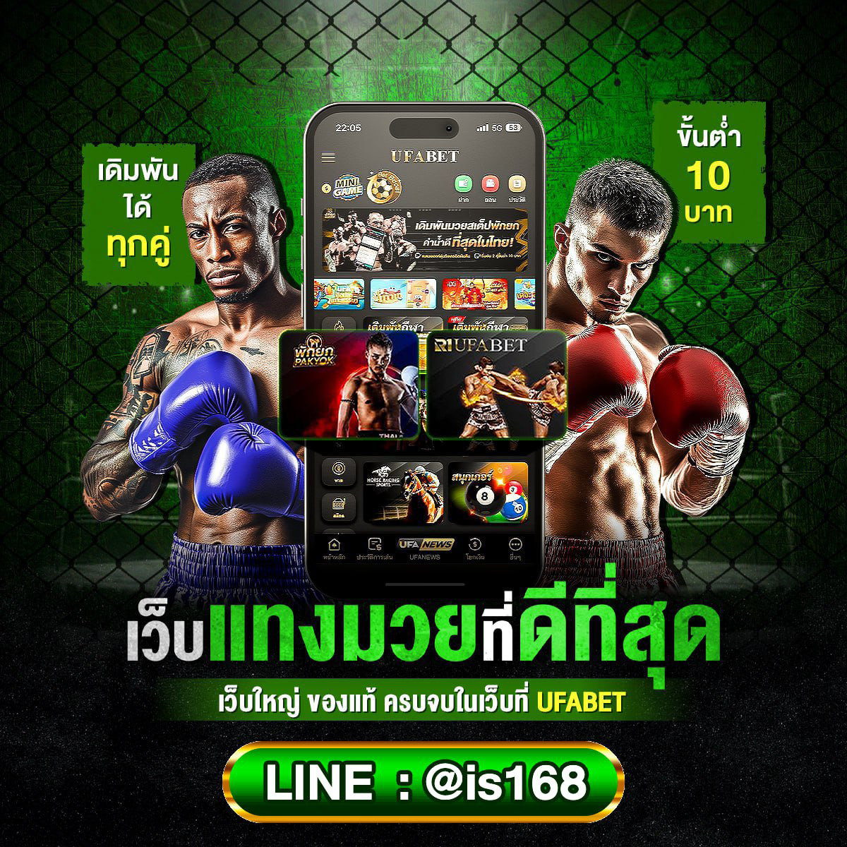 แทงมวยออนไลน์ กับ เว็บมวยออนไลน์ @is168 ผู้ให้บริการแทงมวยออนไลน์ครบวงจร ทั้ง แทงมวยเดี่ยวแทงมวยสเต็ปแทงมวยชุดแทงมวยพักยก และยังมีการเดิมพันออนไลน์ให้ท่านเลือกอีกมากมาย @is168 เป็นเว็บแทงมวยออนไลน์ที่มีความมั่นคงสูง สำหรับแฟนมวยทุกท่านที่กำลังให้ความสนใจในการแทงมวยออนไลน์ เราขอแนะนำ ระบบการแทงมวยออนไลน์ของ @is168 ที่มีความทันสมัยที่สุด ใช้งานง่ายที่สุด มีให้บริการทั้งในระบบ Android และ ระบบ IOS พร้อมทั้งระบบถ่ายทอดสดมวยไทย ครบทุกคู่ที่เปิดให้แทงมวยออนไลน์ สดตรงถึงท่านทุกวัน คุณภาพคมชัดระดับ HD