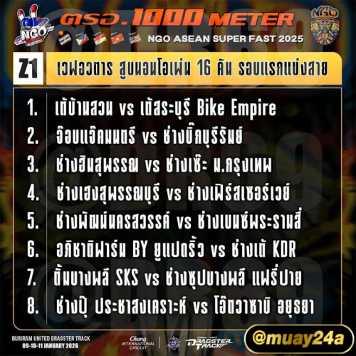 การแข่งขัน NGO Racing ThailandNGO Asean Super Fast 2025 9-10-11 มกราคม 2569 ( สนามบุรีรัมย์ยูไนเต็ดแดร๊กเตอร์แทร๊ก) ถือเป็นอีกหนึ่งอีเวนต์กีฬาความเร็วที่ได้รับความสนใจอย่างมากในช่วงต้นปี โดยมีกำหนดจัดขึ้นระหว่างวันที่ 9–10–11 มกราคม ซึ่งเป็นรายการระดับอาเซียนที่รวบรวมสุดยอดนักแข่งสายความเร็วจากหลายประเทศในภูมิภาค มาร่วมประชันฝีมือกันอย่างเข้มข้นตลอด 3 วันเต็ม