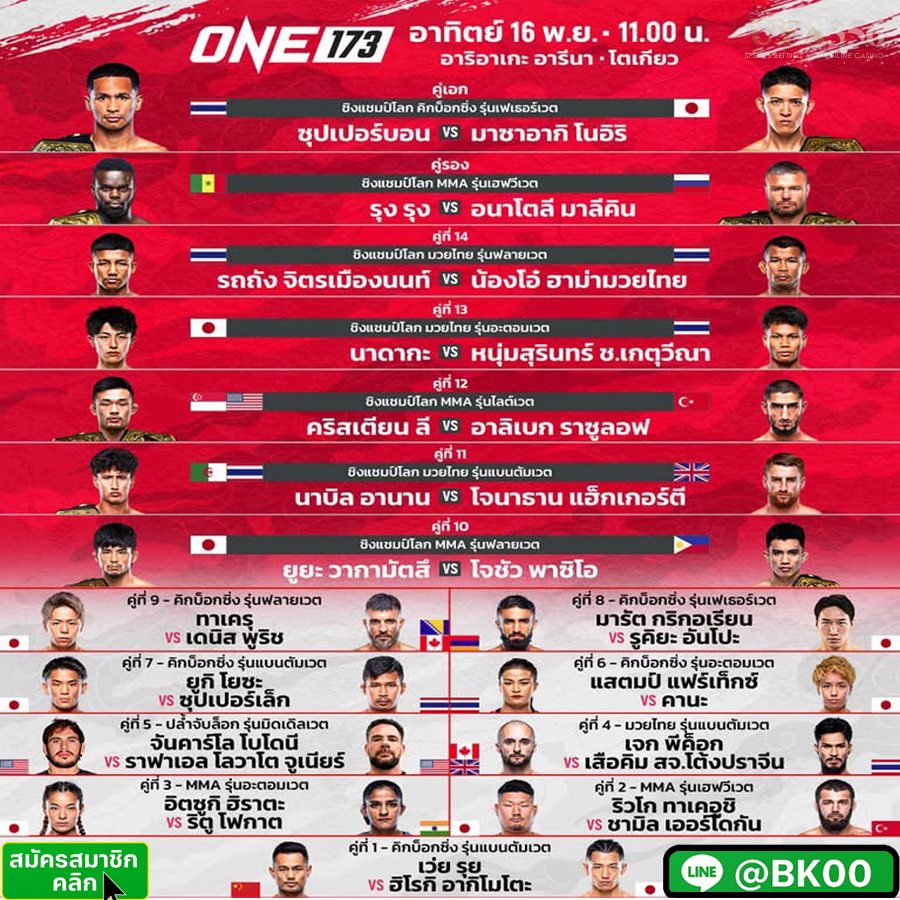 แทงมวยสากล ONE แทงมวย MMA ONE แทงมวยคิกบ็อกซิ่ง ONE แทงมวยมวยไทย ONE แทงมวยมวยกรง ONE