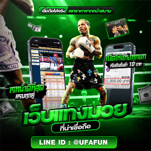 แทงมวยออนไลน์ กับ เว็บมวยออนไลน์ UFAFUN88 ผู้ให้บริการแทงมวยออนไลน์ครบวงจร ทั้ง แทงมวยเดี่ยวแทงมวยสเต็ปแทงมวยชุดแทงมวยพักยก และยังมีการเดิมพันออนไลน์ให้ท่านเลือกอีกมากมาย UFAFUN88แนะนำ เว็บมวย อันดับหนึ่ง แทงมวย ออนไลน์ด้วยราคามวยดีที่สุด