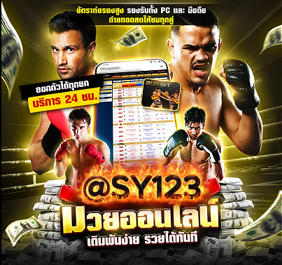 แทงมวยออนไลน์ กับ เว็บมวยออนไลน์ @SY123 ผู้ให้บริการแทงมวยออนไลน์ครบวงจร ทั้ง แทงมวยเดี่ยว แทงมวยสเต็ป แทงมวยชุด แทงมวยพักยก และยังมีการเดิมพันออนไลน์ให้ท่านเลือกอีกมากมาย @SY123 เป็น เว็บแทงมวย ออนไลน์ที่มีความมั่นคงสูง สำหรับแฟนมวยทุกท่านที่กำลังให้ความสนใจใน การแทงมวยออนไลน์ เราขอแนะนำ ระบบการ แทงมวยออนไลน์ ของ @SY123 ที่มีความทันสมัยที่สุด ใช้งานง่ายที่สุด มีให้บริการทั้งในระบบ Android และ ระบบ IOS พร้อมทั้งเว็บแทงมวย ระบบถ่ายทอดสดมวยไทย ครบทุกคู่ที่เปิดให้แทงมวยออนไลน์ สดตรงถึงท่านทุกวัน คุณภาพคมชัดระดับ HD