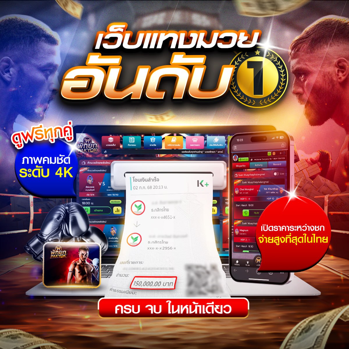 เว็บแทงมวยไทยที่ดีที่สุด แทงมวยวันนี้ ราคามวยอัพเดทตลอดเวลา มีหลายการแทงมวยหลากหลาย แทงมวยเต็ง แทงมวยสเต็ป หรือแทงมวยพักยก เว็บแทงมวยที่น่าเชื่อถือ เว็บมวยออนไลน์ ครบเครื่องเรื่องมวย แทงมวยสด มวยone championship แทงมวยเดี่ยวแทงมวยสเต็ปแทงมวยชุด ตารางสรุปเว็บแทงมวยออนไลน์