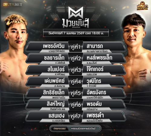 📌 อัปเดต โปรแกรมมวย ครบทุกเวทีดัง ไม่ว่าจะเป็นราชดำเนิน มวยวัน ลุมพินี หรือมวยไทย 7 สี
