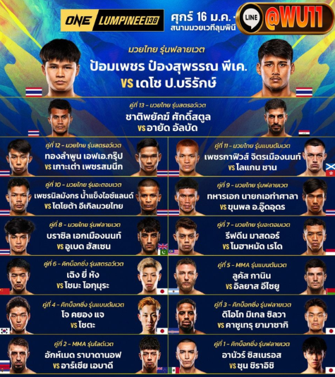 เว็บ แทงมวย ที่เปิดให้แทงมวยวัน One Championship แบบสดๆ ครบทุกคู่ แทงได้ทุกคู่ ราคาเริ่มต้นที่ 10 บาทต่อคู่ ไม่ว่าคุณจะเป็นแฟนมวย แทงยกต่อยก เสมอ ไล่ลง ไม่คิดเงิน สเต็ปมวยไม่ตาย สเต็ปมวย ผสมกันได้ 1 -10 คู่ แอดมินบริการ ตลอด 24 ชม