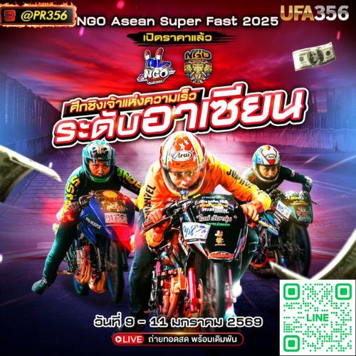 พร้อมถ่ายทอดสดให้แฟนความเร็วได้ติดตามอย่างใกล้ชิด และแน่นอนว่าในฝั่งสายลุ้น คำค้นอย่าง แทงแข่งรถ, แทงแข่งรถออนไลน์, และ เว็บแทงแข่งรถ กำลังมาแรงอย่างมาก โดยเฉพาะบนแพลตฟอร์มอย่าง @PR356NGO Asean Super Fast 2026 คือการแข่งขันแข่งรถทางตรง (Drag Bike) ระดับเอเชีย ที่รวมรถแรง นักบิดระดับท็อป และทีมแข่งชั้นนำจากหลายประเทศในอาเซียน มาประชันกันแบบวัดผลแพ้ชนะในระยะสั้น แต่ตัดสินกันด้วยเสี้ยววินาที
